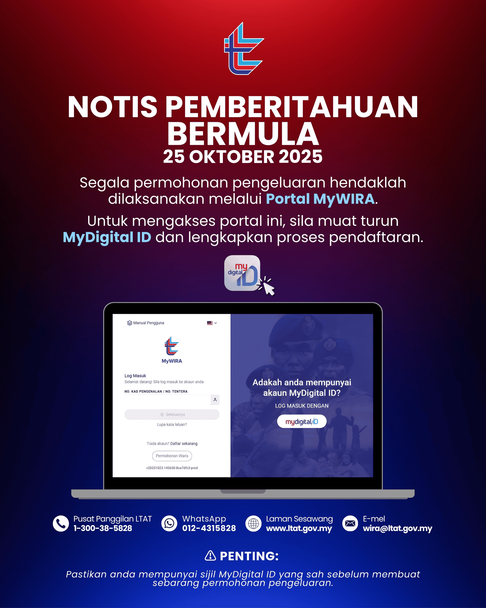 Bermula Oktober 2025, permohonan pengeluaran LTAT boleh dibuat melalui Portal MyWIRA tanpa perlu hadir ke pejabat LTAT.
