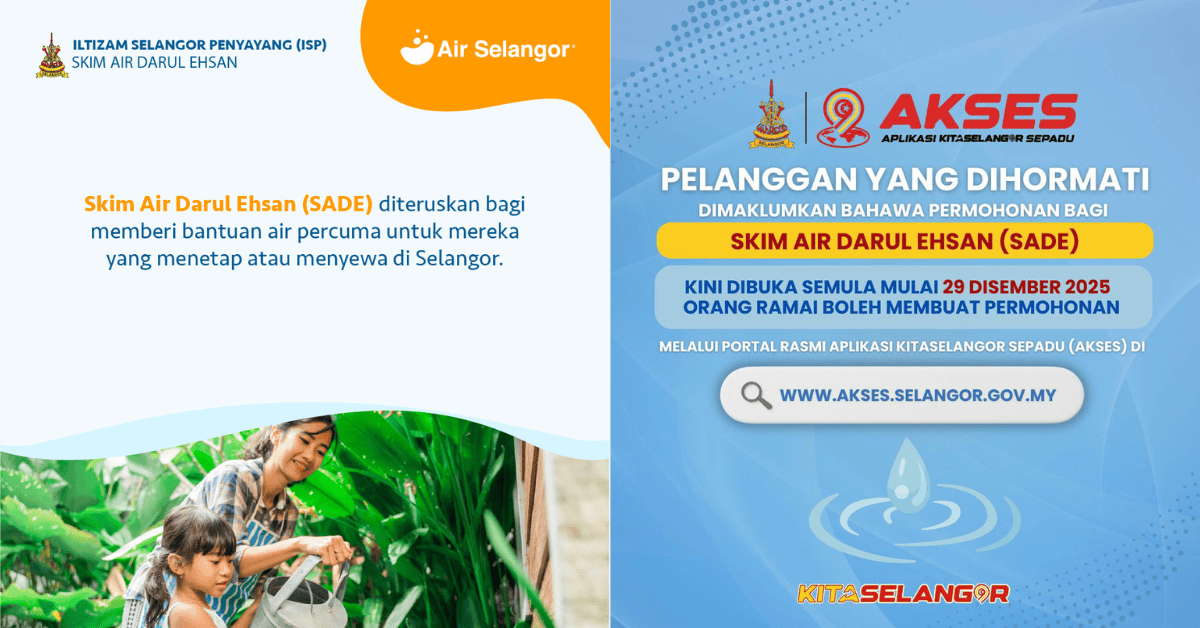 De nouvelles candidatures pour le Darul Ehsan Water Scheme (SADE) ont été ouvertes à partir du 29 décembre 2025 via le lien